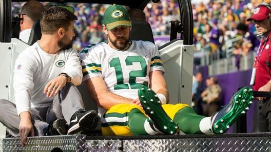 The injury that sent Aaron Rodgers to the medical tent, then got carted off from the sidelines to the locker room pic.twitter.com/AI9V8lVAEm