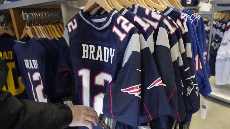 No tuvo suerte.En su lugar, la camiseta de Brady de cuando estaba con Nueva Inglaterra y Michigan colgaba de un perchero junto al de otros exjugadores de los Patriots, incluyendo el tight end Rob Gronkowski, que se unió a su excompañero en Tampa Bay. Parte de la mercancía de Brady tenía descuento, pero la réplica de su jersey mantenía el precio más alto.