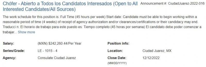 Requisitos para el empleo de chofer en el Consulado de EU en Ciudad Juárez