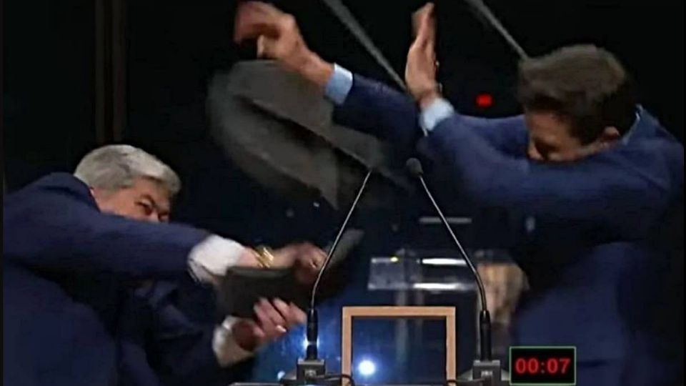 ¡Como en las luchas! Candidato en Brasil le lanza un 'sillazo' a su contrincante