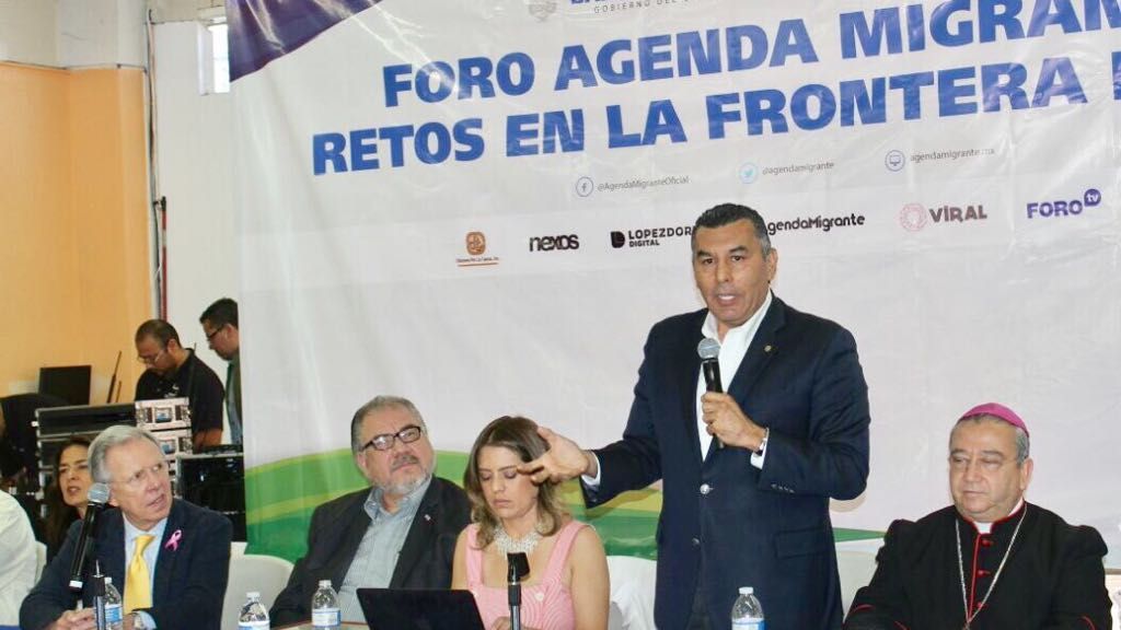 En representación del Gobernador del Estado, Francisco Vega de Lamadrid, el Secretario General de Gobierno, Francisco Rueda Gómez, acudió al Foro Agenda Migrante: Retos en La Frontera Norte, realizado este día en el Desayunador Salesiano “Padre Chava”, marco en el cual a nombre del Gobierno de Baja California se pronunció a favor de que la Federación otorgue mayores recursos para la atención de los migrantes que llegan a esta entidad.