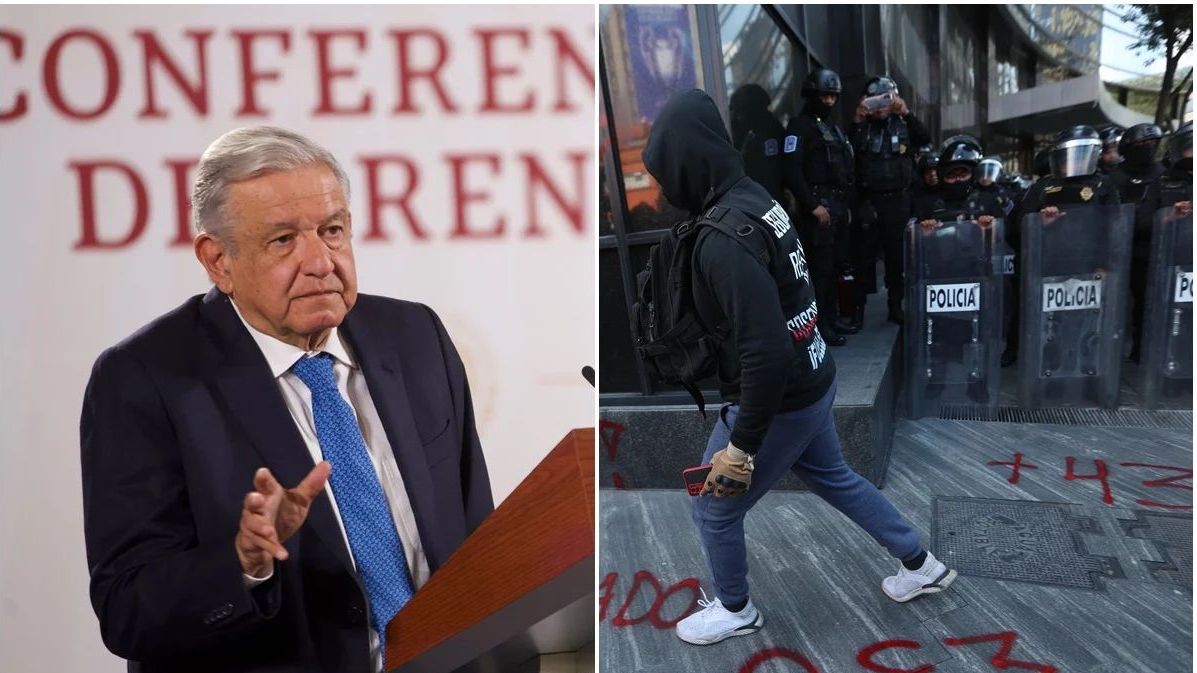 El presidente Andrés Manuel López Obrador reprobó los actos de violencia durante una manifestación, en las instalaciones de la Fiscalía General de la República (FGR), para exigir justicia en el Caso Ayotzinapa.
