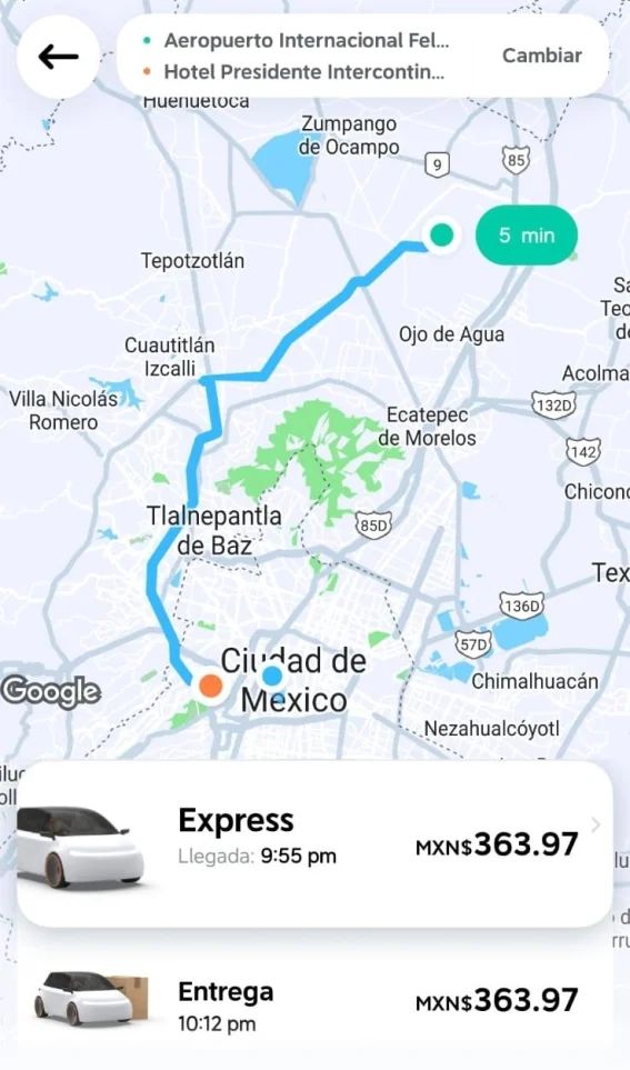 EL UNIVERSAL calculó el costo de un DiDi desde el AIFA hacia dicho hotel y el costo del trayecto para las 21:14 horas era de 363.97 pesos.