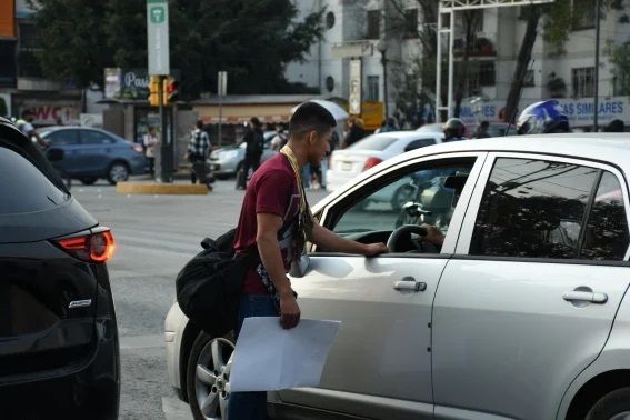 Se pone la luz roja y cruza con velocidad la avenida de coche en coche a pedir ayuda. Muchos conductores en lugar de dinero le dan supuestos consejos: “mejor deberías trabajar”, “que te ayude el gobierno”, “estás chavo, mejor haz otra cosa” y se van.