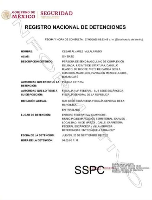 El padre del cantante Julión Álvarez, identificado como César Álvarez Villalpando, fue detenido la tarde del jueves 25 de septiembre en el municipio de Carmen, Campeche, junto con tres hombres más.