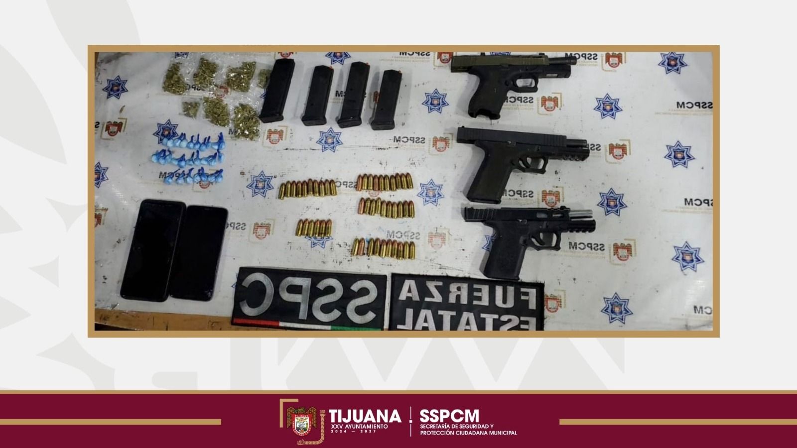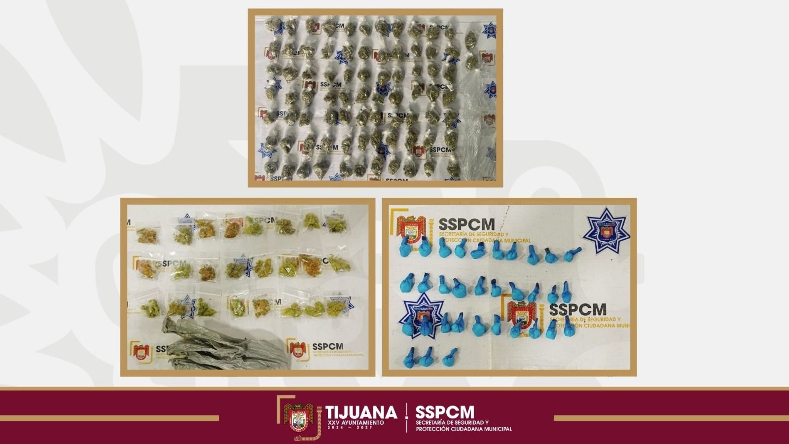Mientras tanto, en Playas de Rosarito, fueron aprehendidas dos personas en la calle San Luis Potosí esquina con Baja California en la colonia Constitución. En el lugar, policías aseguraron ocho envoltorios de metanfetamina de un peso aproximado de 19.7 gramos, además de nueve envoltorios con marihuana que dio un peso de 16 gramos.