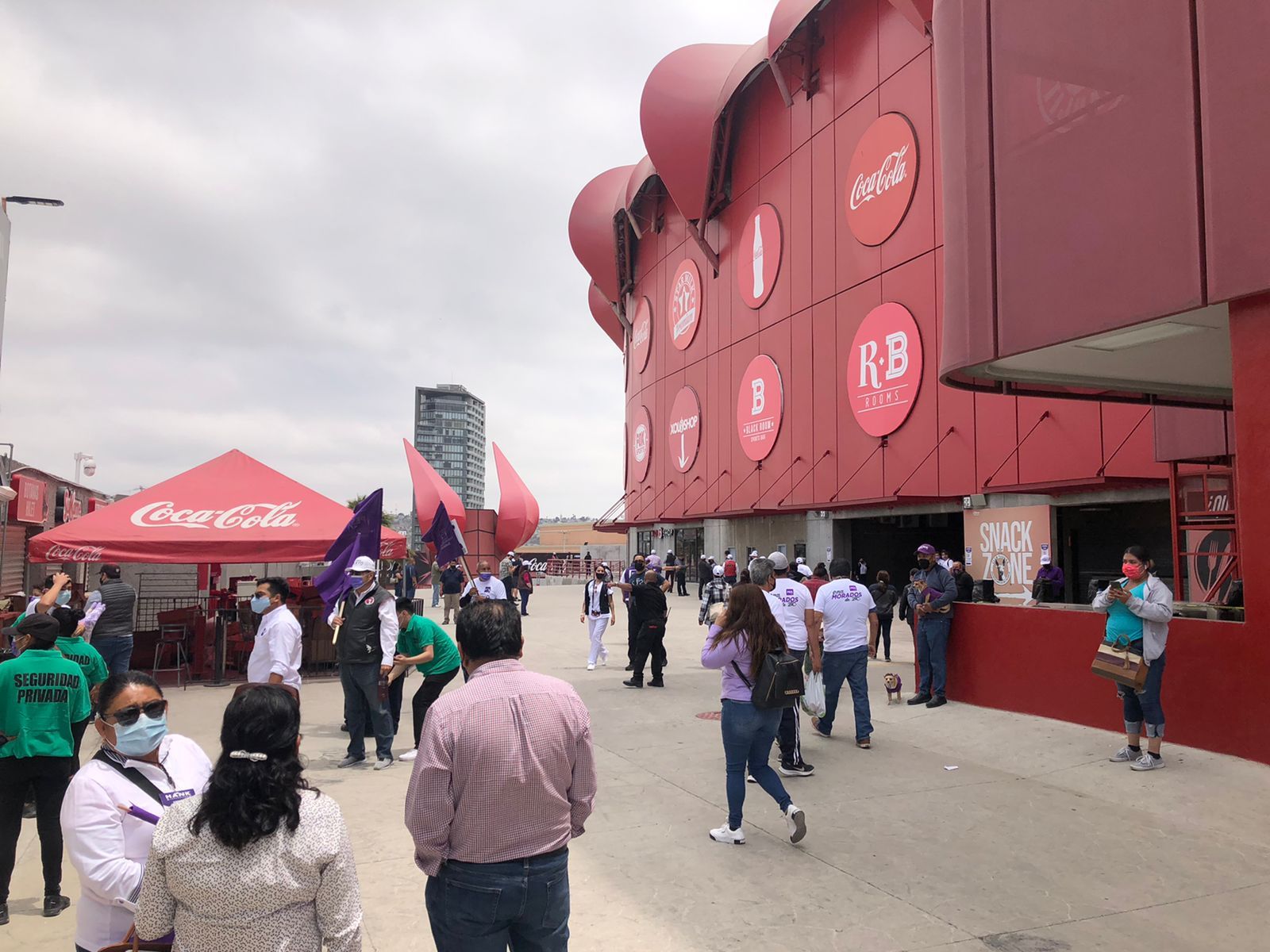 La ciudadanía animada sostiene banderas y asisten con vestimenta de colores que representan al partido, además se pide mantener el distanciamiento social para evitar la propagación del virus.
