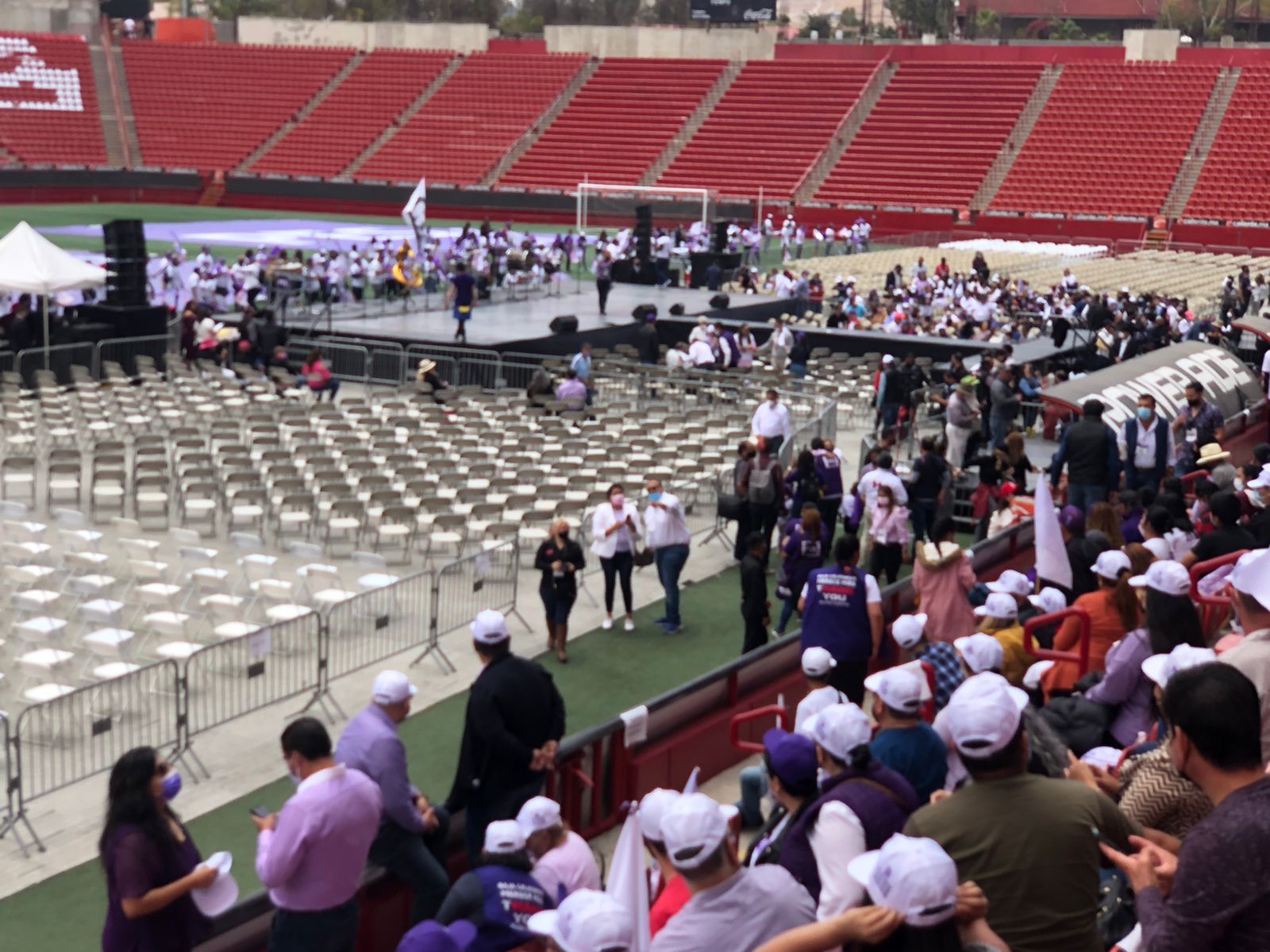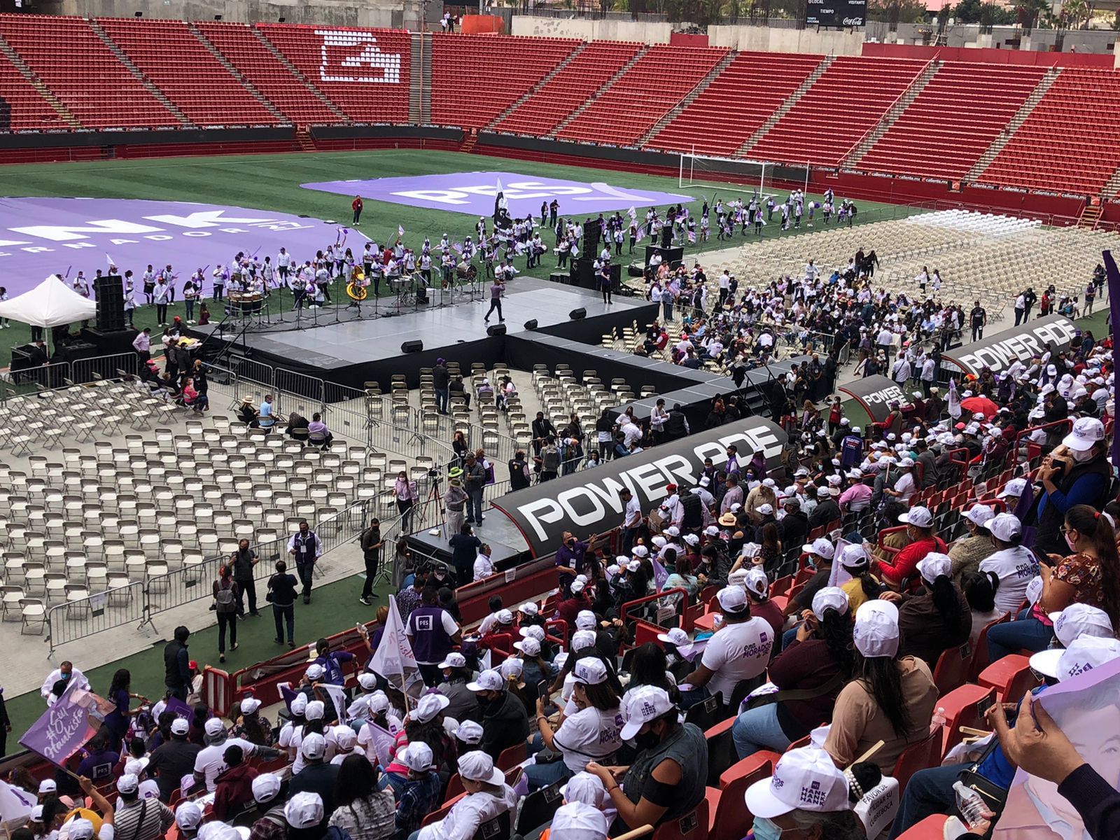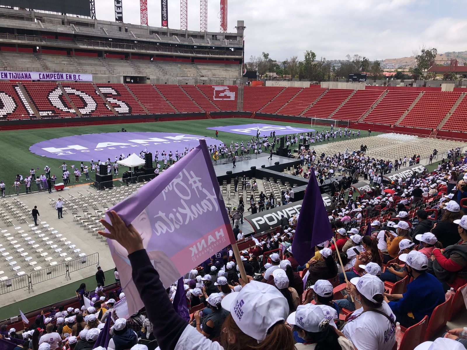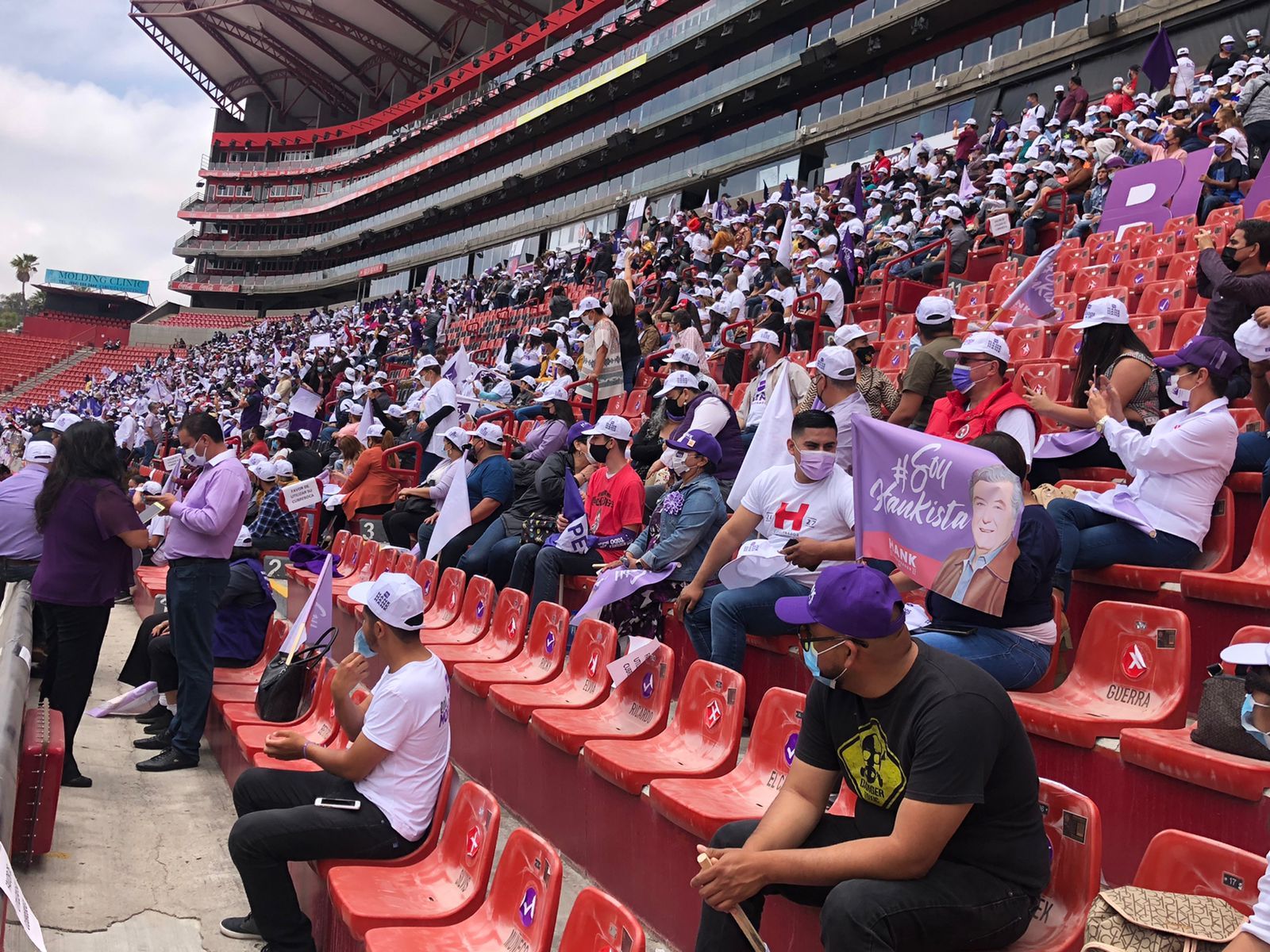 Desde muy temprano este domingo cientos de simpatizantes han arribado al Estadio Caliente para apoyar al Ingeniero Jorge Hank Rhon, candidato a la Gubernatura de Baja California por el Partido Encuentro Solidario (PES).