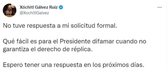 Xóchitl Gálvez solicitó este lunes asistir a la mañanera “para aclarar mi postura respecto a programas sociales”, tras las afirmaciones de López Obrador.
