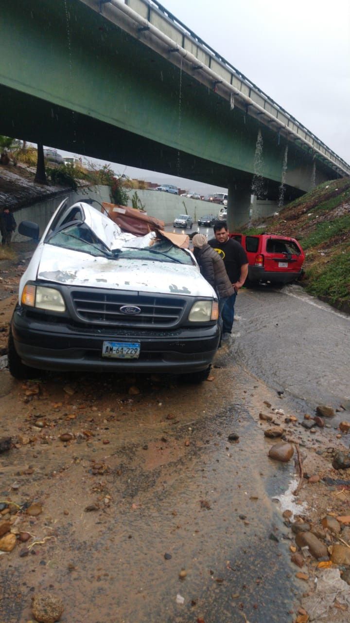 Un carro le cae del puente a un pick up hay una personal lesionada atorada que es la que iba en el pick up...