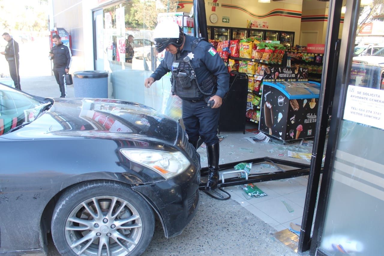 Un automovilista se metió con su vehículo al 7 Eleven, a un costado del Hospital General de Tijuana.