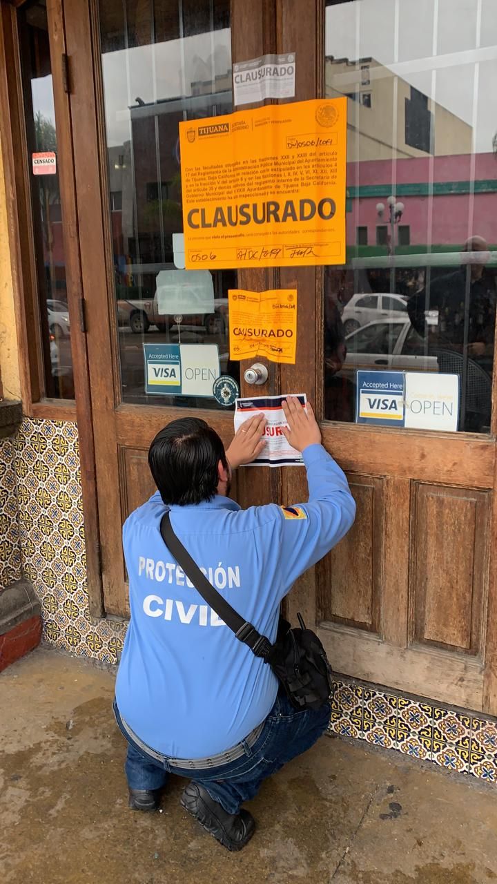 Protección Civil, Bomberos e Inspección y Verificación clausuraron el restaurante del histórico Hotel Nelson de la Avenida Revolución y calle Primera, por insalubre y otros detalles encontrados en su cocina.