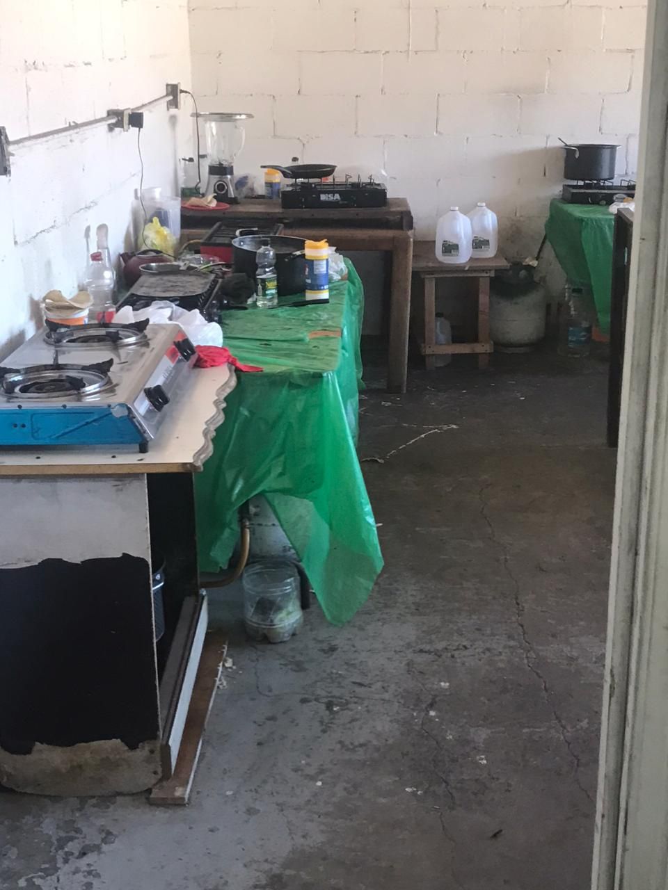 Hay ocho estufas y ocho minas de gas en cuarto improvisado como comedor. En baños insalubres hacen sus necesidades y se bañan.