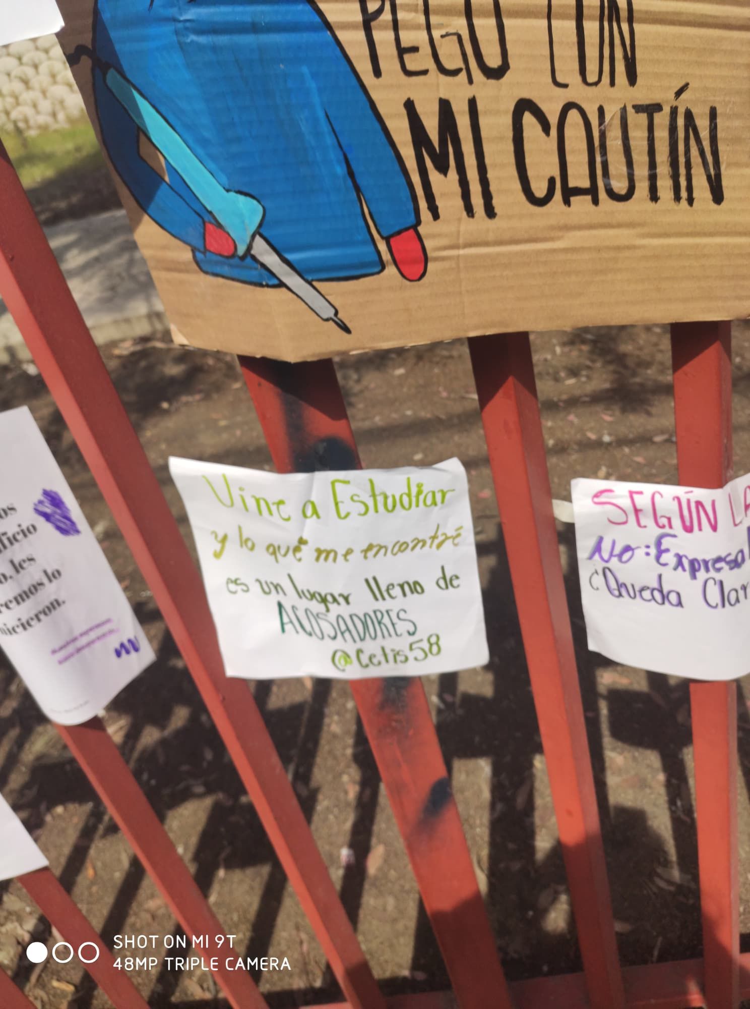 En los carteles se observan mensajes de índole sexual que han sufrido las alumnas así como capturas de pantalla de situaciones inquietantes.