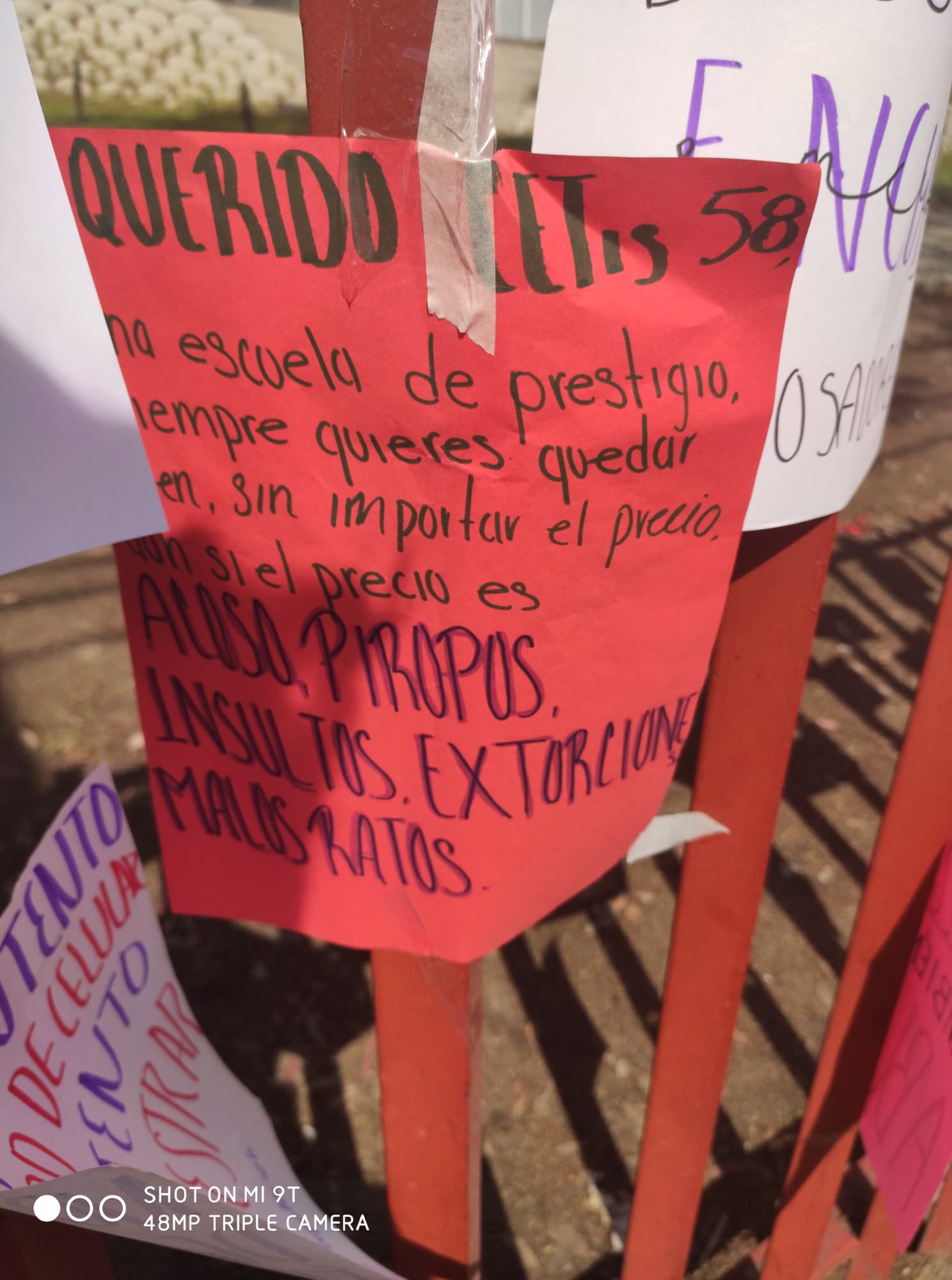 Esto es un llamado de auxilio a las autoridades educativas del plantel CETis 58 para que tomen cartas en el asunto y también a las autoridades correspondientes para tomar acciones legales en contra de los acosadores.