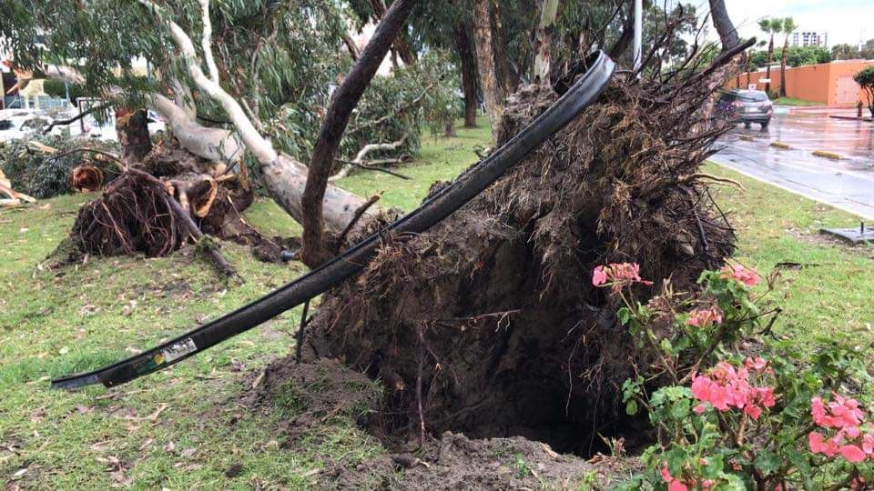 La lluvia y el viento de este miércoles derribó un árbol con 30 años de vida en Paseo de Los Héroes, de Tijuana.