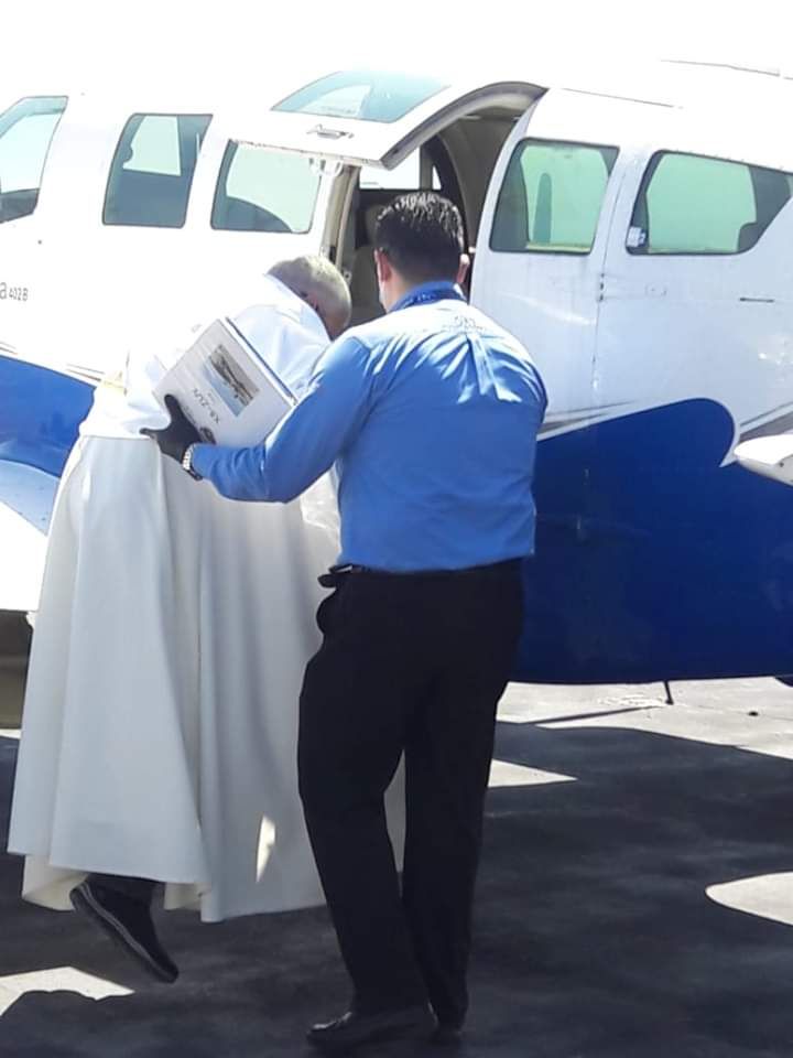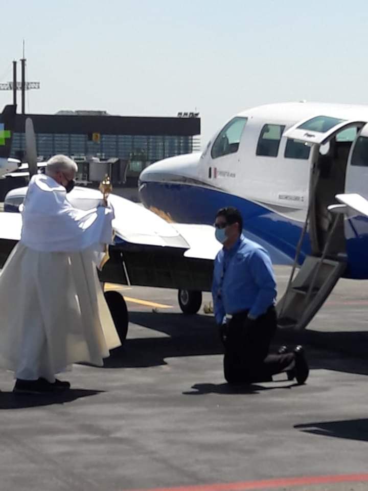 Durante el recorrido dentro de la avioneta se llevó a cabo un rezo a través de audio de la oración de Consagración de la Arquidiócesis de Tijuana de voz del Arzobispo Francisco Moreno Barrón a Ntra. Sra. de Guadalupe, así, como las estaciones que son oraciones propias para la adoración al Santísimo Sacramento y la oración del Papa Francisco para pedir el cese de esta pandemia del covid-19.