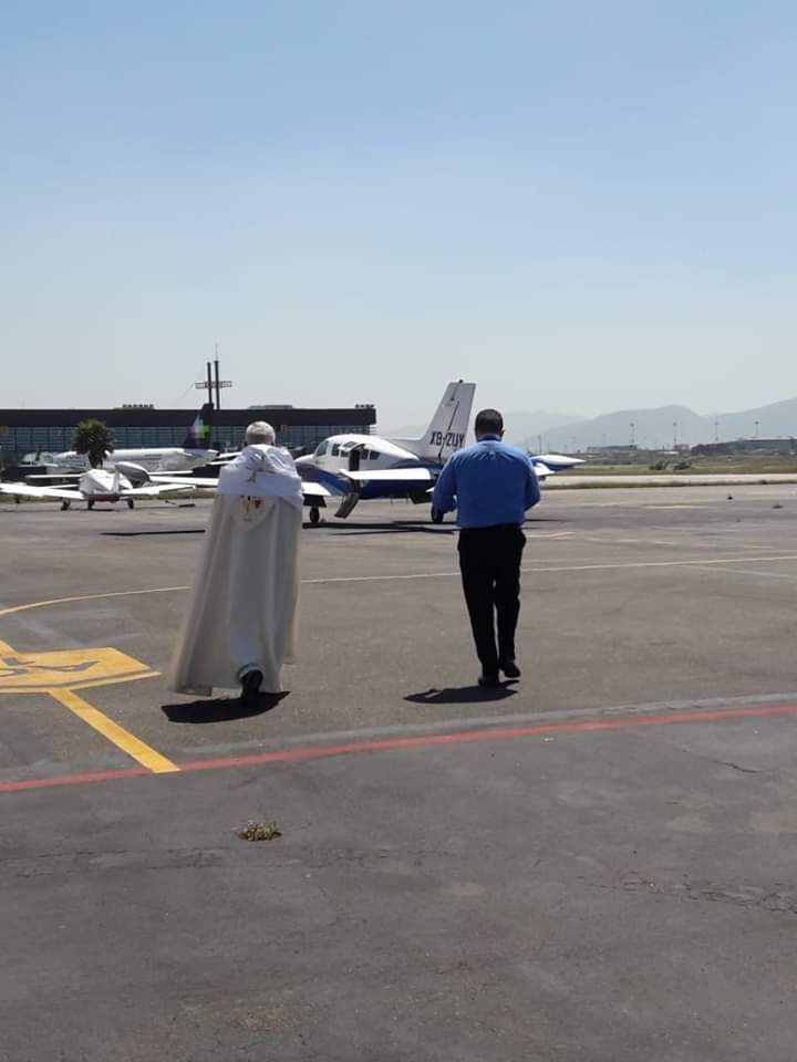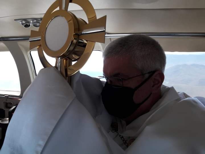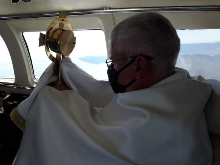 Este jueves se llevo a cabo la 'Solemne Bendición con el Santísimo Sacramento' desde una avioneta que recorrió Tijuana, Tecate y Rosarito. Durante el vuelo el sacerdote Jorge Eduardo Zárraga Martínez realizó la señal de la cruz y bendijo con la custodia donde se encuentra la hostia consagrada.
