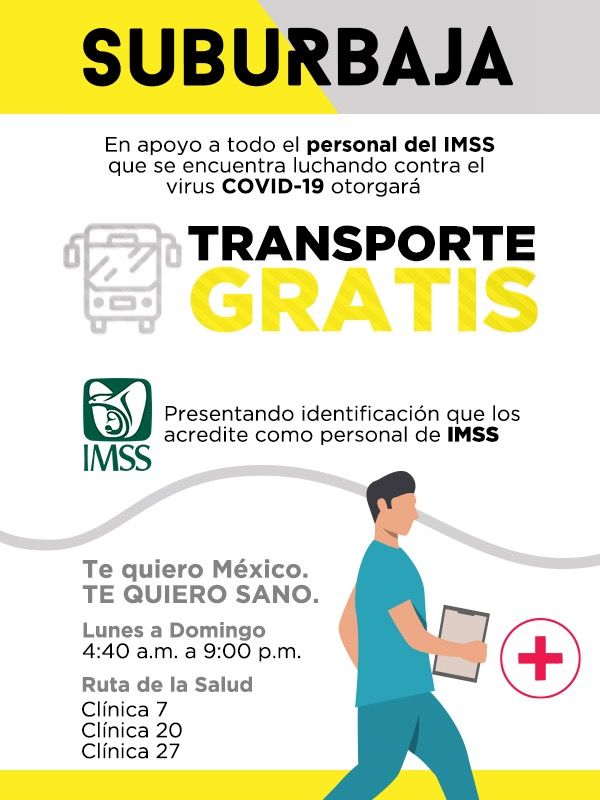 Las empresas que se sumaron a esta iniciativa de traslado gratuito a empleados del IMSS son: Suburbaja, Verde & Crema, abc y El Hongo.