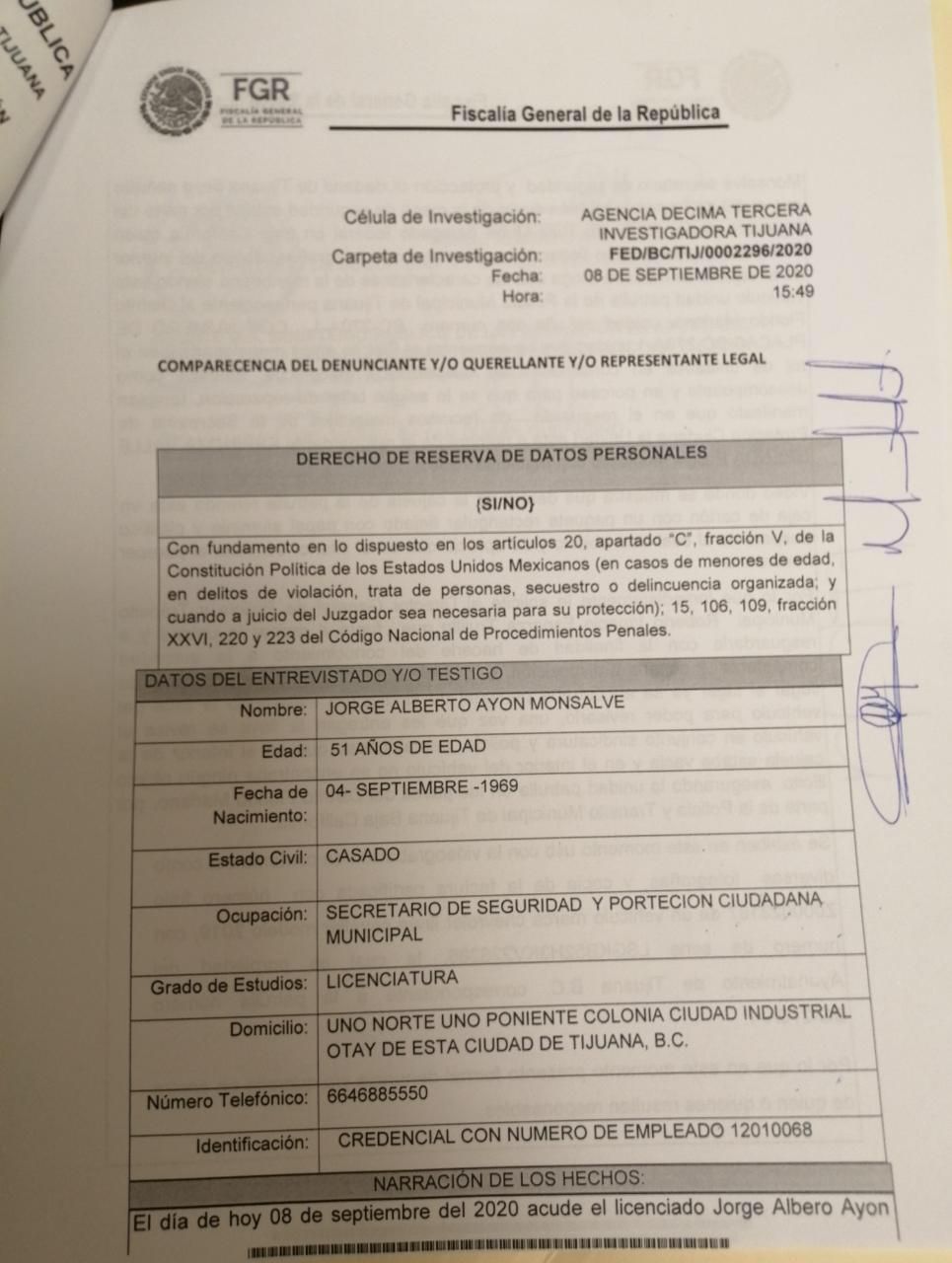 La querella quedó registrada bajo el expediente FED/BC/TIJ/0002296/2020.