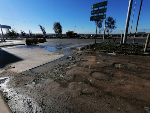 Sobre la carretera que va al aeropuerto y carril sentri por bellas artes se encuentra una enorme fuga de aguas negras y potable que ha ocasionado daños a los carros y puede provocar serios accidentes.