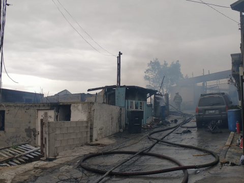 Elementos de bomberos arribaron para sofocar el incendio, pero debido a los fuertes vientos de Santa Ana rápidamente se propagó hacia los domicilios aledaños.