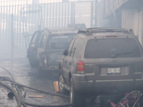Así mismo se reportaron dos vehículos incendiados, uno de ellos consumido por el fuego y uno más con daños parciales.