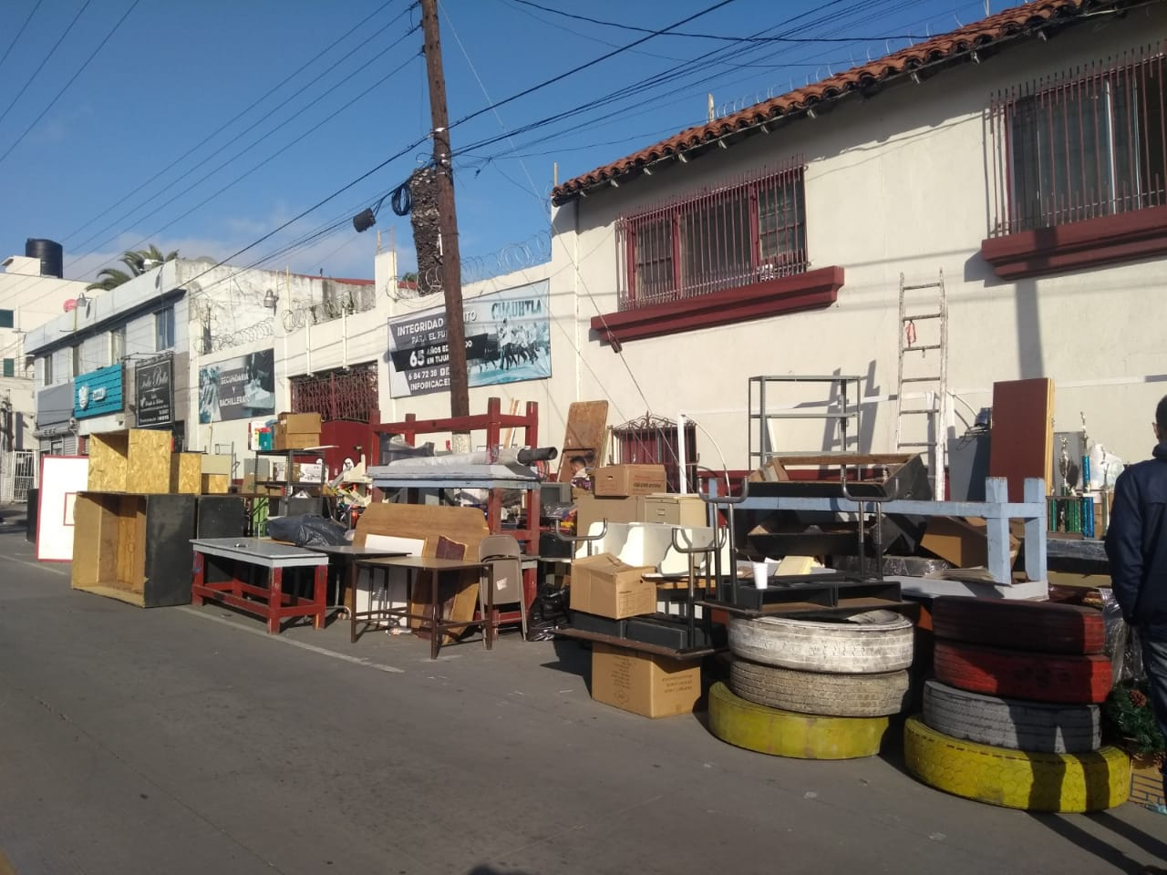 Esta mañana se constató que el inmobiliario aún se encuentra al exterior del plantel obstruyendo la banqueta y parte de la vialidad.