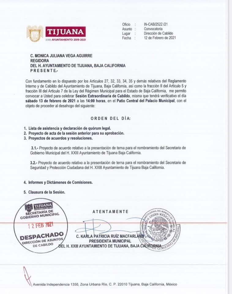 En sesión de Cabildo programada para este sábado 13 de febrero, el cuerpo edilicio nombrará a los titulares de las Secretarías de Gobierno y de Seguridad y Protección Ciudadana Municipal.