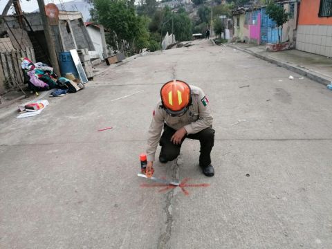 “Daremos seguimiento puntual a las acciones para la protección de los residentes de la colonia 3 de Octubre, es por eso que el pasado miércoles, se llevaron a cabo tres inspecciones apoyados de un dron para vigilar las fisuras y detectar los posibles movimientos de tierra”, explicó el director de Protección Civil Municipal, Marco Antonio Sánchez.