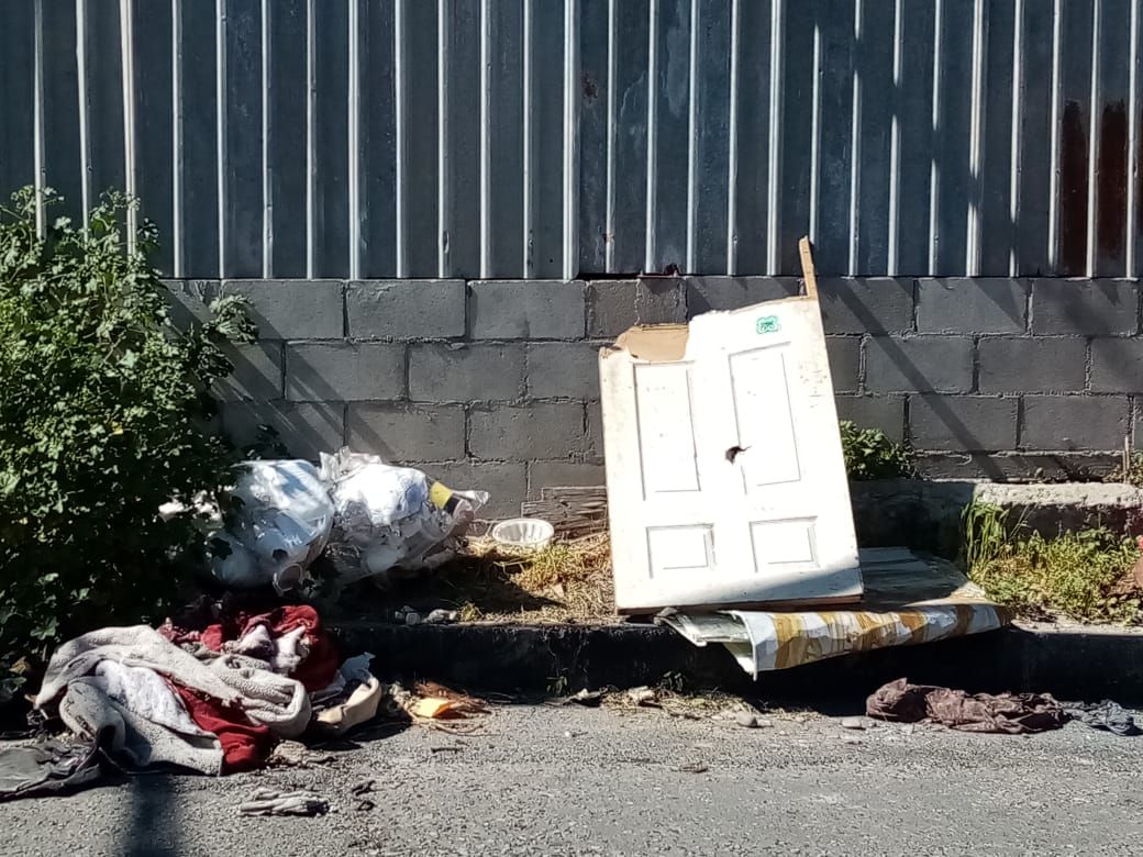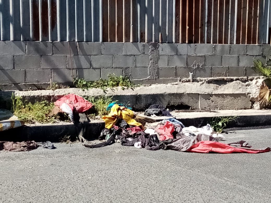 Muebles, desechos, ropa y hasta cubrebocas fueron arrojados sobre la banqueta y parte de la calle impidiendo el paso de los peatones.