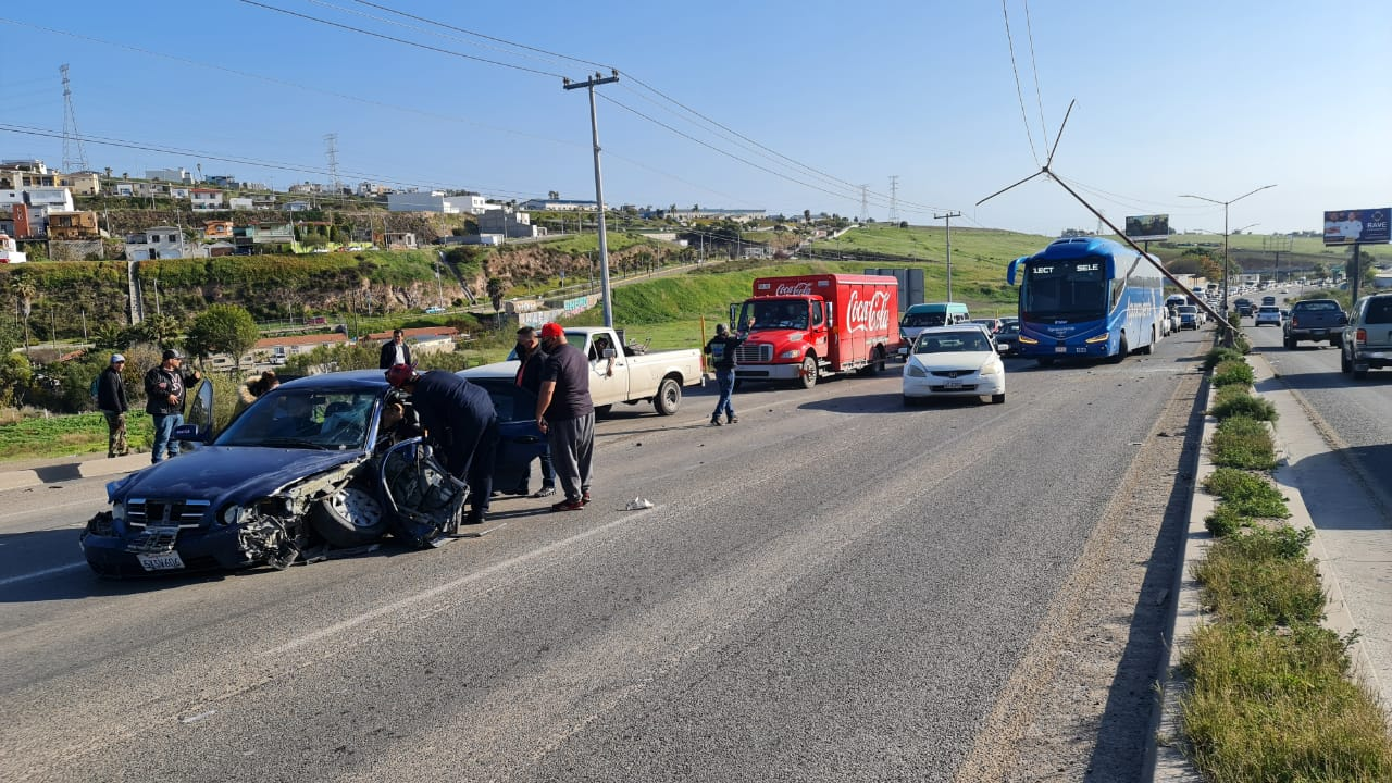 Alrededor de las 4:30 de esta tarde se reportó un fuerte accidente vehicular sobre la carretera Rosarito-Tijuana a la altura de Cuesta Blanca donde se vio involucrado un vehículo compacto color azul Honda con vidrios polarizados dónde masculino resultó lesionado.