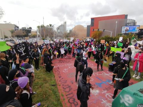 La base del monumento México mejor conocido como "Las tijeras" fue rayado con aerosol por cientos de mujeres que acudieron a manifestarse en una protesta que mencionan algunas de ellas "por estar hartas de toda la presión que se ejerce sobre ellas y los abusos que desde niñas han recibido", expresando que pintar un monumento es para ellas "ejercer presión a a las autoridades para actuar frente a los abusos que sufren".