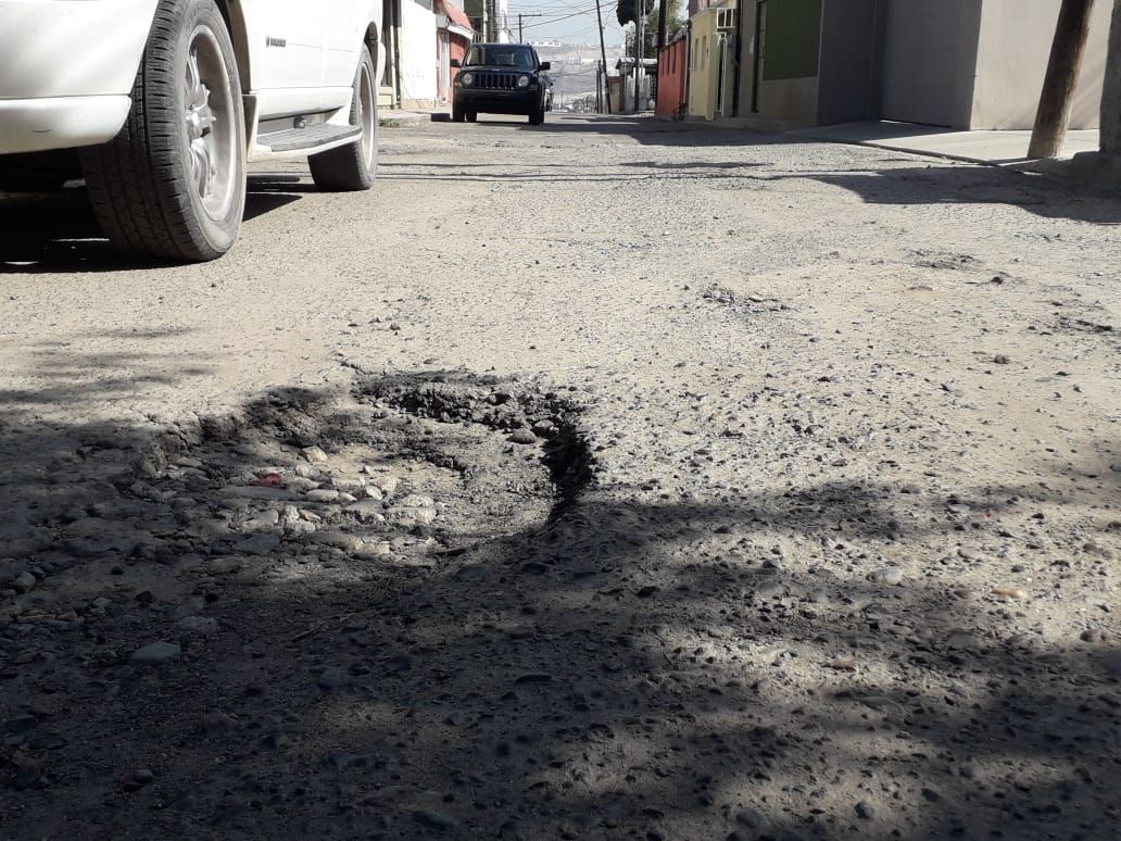 En pésimas condiciones se encuentra la Avenida de la luz de la Delegación La Mesa en la ciudad de Tijuana, enormes baches se pueden observar desde el inicio de la calle que dificulta el tránsito vehicular.