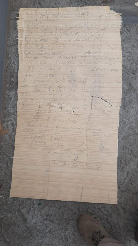 La DSPM informó que contenía una leyenda, y estaba colocada en las inmediaciones de la avenida Reforma y calle Plinta, en el fraccionamiento Valle Dorado, motivo por el cual se abocaron agentes municipales.