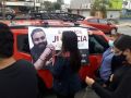 Las personas que se unen para exigir justicia visten color negro y algunos colocaron lonas con la fotografía de Juan Carlos en los vehículos.
