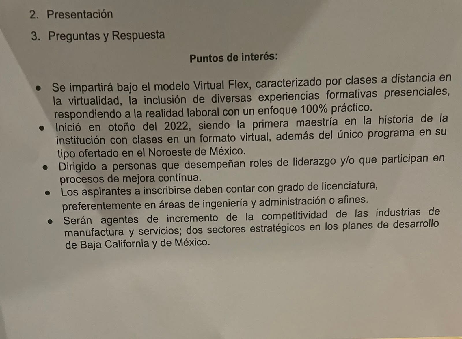 Adelantan que esta maestría va dirigida a profesionales de la Ingeniería y Administración con experiencia en la Industria de Manufactura o de Servicios.