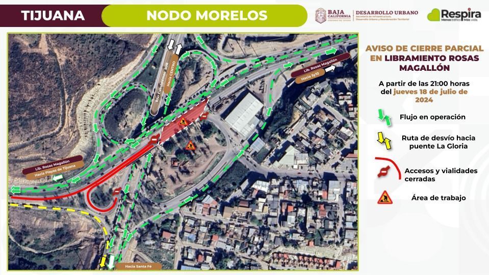 El Ayuntamiento de Tijuana informa a la población que a partir del jueves 22 de diciembre se llevará a cabo el cierre total del retorno existente en el Libramiento Rosas Magallón, por lo que se exhorta a la población a tomar sus precauciones y vías alternas.
