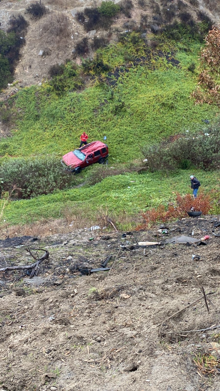 Un joven, que presuntamente conducía a exceso de velocidad, resultó lesionado tras la voladura de su vehículo particular, un automóvil de color azul con placas de California (serie 3XBP606), que terminó volcándose a un costado de la carretera.