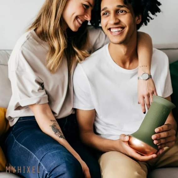 Myhixel Play viene con un equipo de silicona verde, parecido a un florero, que se calienta automáticamente y produce vibraciones suaves y constantes en el pene. A su vez, a través de una app, no solo se deben cumplir algunas misiones virtuales sino que aprenderán sobre las funciones en su cuerpo y cómo pueden tener un mejor control.